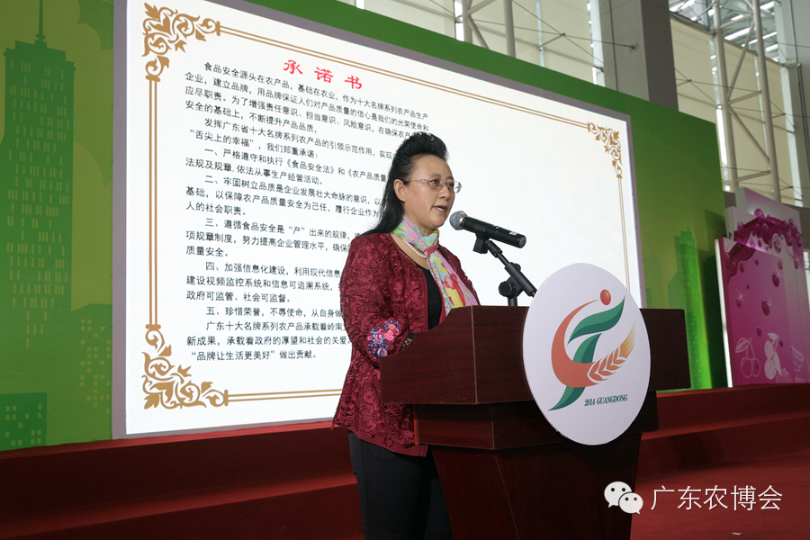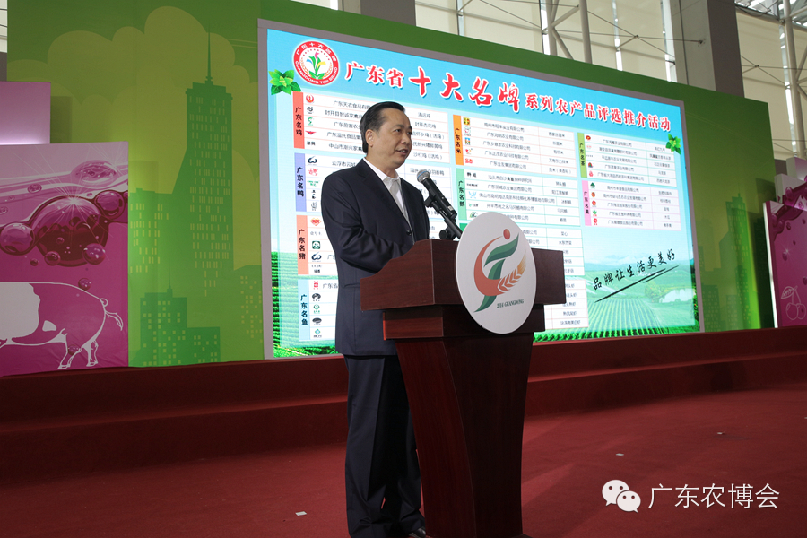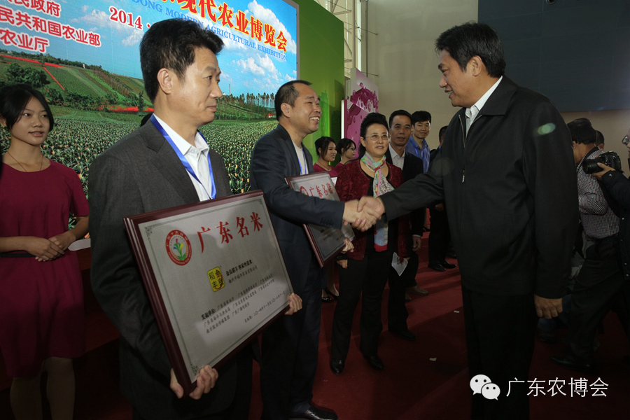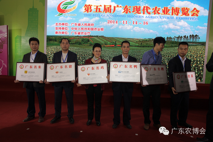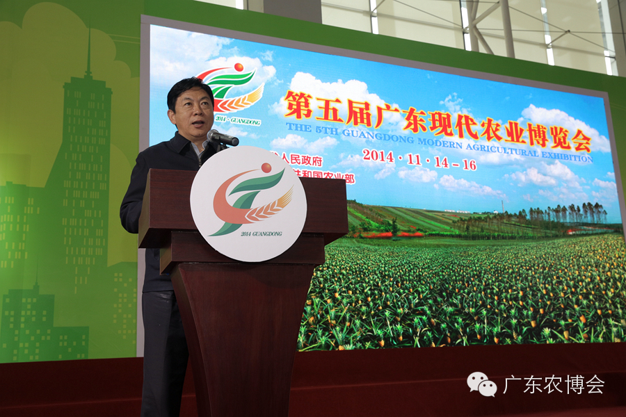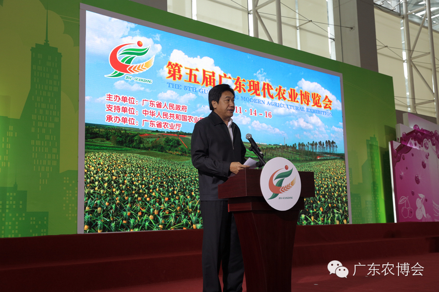 2014年11月14日上午9:30,第五届广东现代农业博览会在广州广交会开幕。开幕活动由广东省人民政府副秘书长颜学亮主持,首先介绍了第五届农博会的情况,广东奖企业名单,广东省副省长邓海光给10家名牌产品企业代表授牌,获奖企业代表宣读承诺书,农业部总农艺师孙中华致辞,邓海光副省长讲话并宣布农博会开幕。